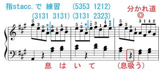 | 指番号の提案 ヘンレ社楽譜使う場合 ・音階は標準的な指番号に 直したほうが よいと思います ・分散3度音階 3度指番号を第3楽章に応用 ![]() ・黒鍵で1指使う(参考図書 スコダの本) 第3楽章アルペジオ 388小節だけ例外 ![]() ・左手で取る(参考楽譜 Peters社原典版) ![]() ・自分の指番号 人によっては 合わないかも ![]() |